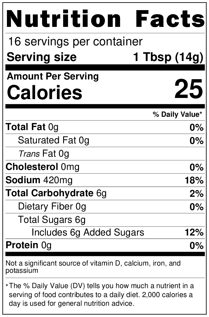 Ingredients: cane sugar, salted soybeans, soy sauce (soybean, wheat flour, salt), water, minced garlic, vinegar, dried ginger roots, salt, dried chili flakes, xanthan gum